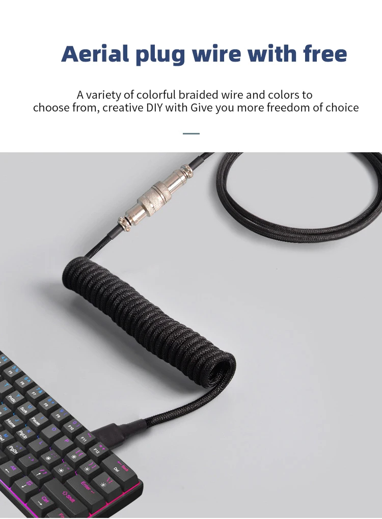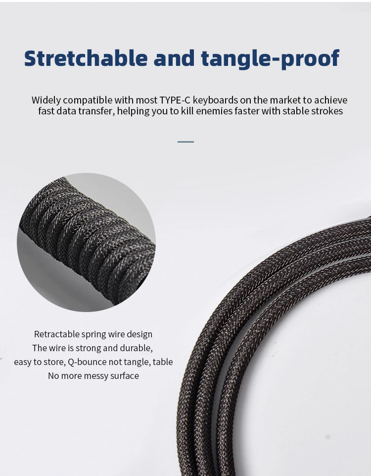 Upgrade your setup with this premium 3-meter coiled USB Type-C cable, built for mechanical keyboards. Features a durable aviator connector, sleek design, and strong compatibility with most custom keyboards. Perfect for gamers, enthusiasts, and minimal desk setups