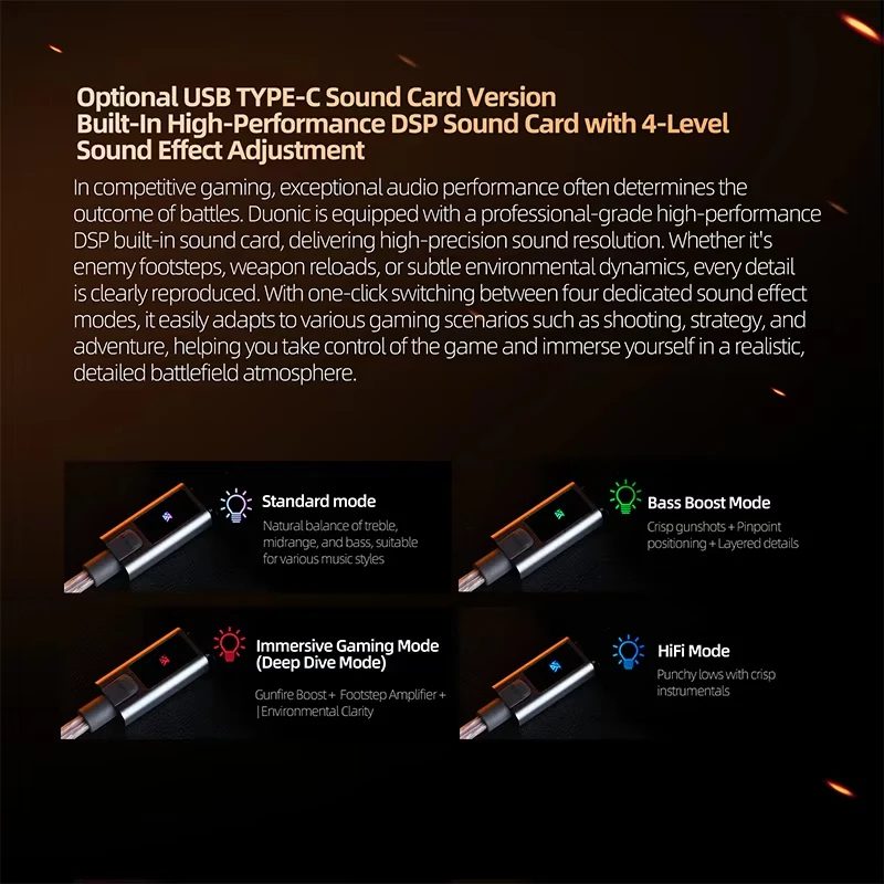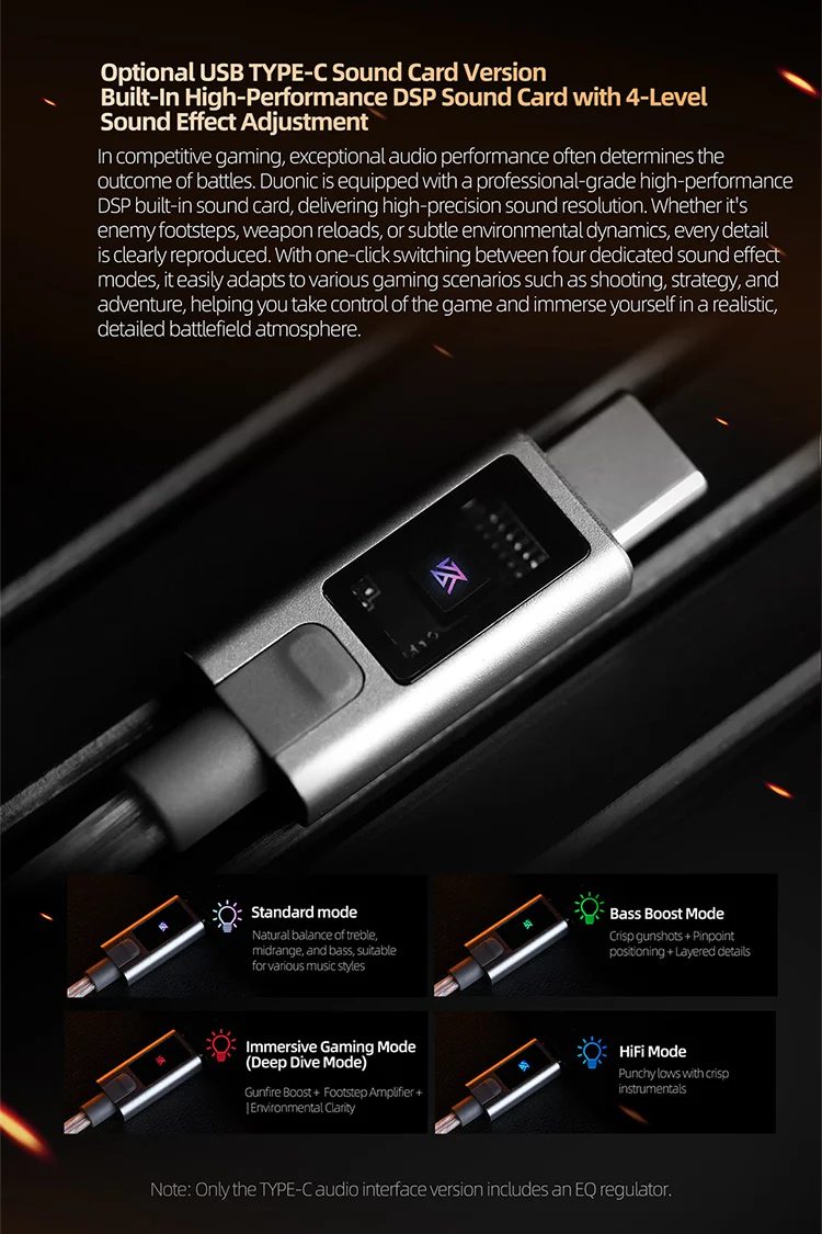 USB Type-C DAC version with 4-level sound effects and DSP tuning for gaming modes