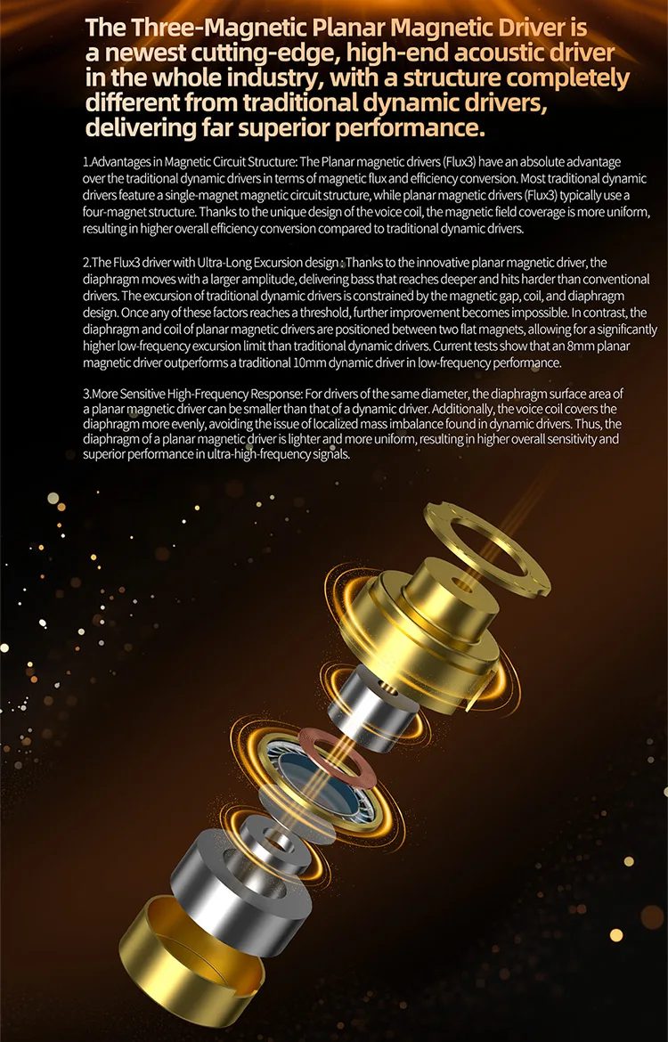 Revolutionary Three-Magnetic Planar Magnetic Driver (Flux3) for faster response and superior clarity