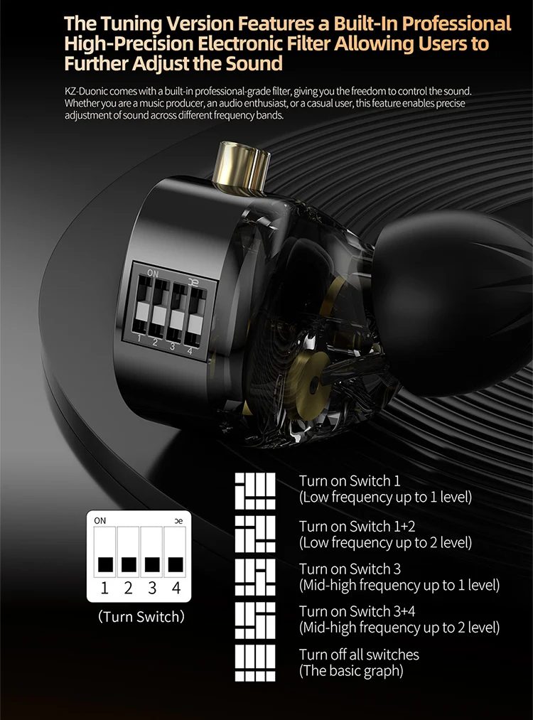 KZ Duonic is engineered to deliver accurate sound positioning, helping you detect enemy footsteps and in-game cues with precision. For music, it reproduces a wide soundstage with natural tonality and rich detail, making every track feel like a live performance.