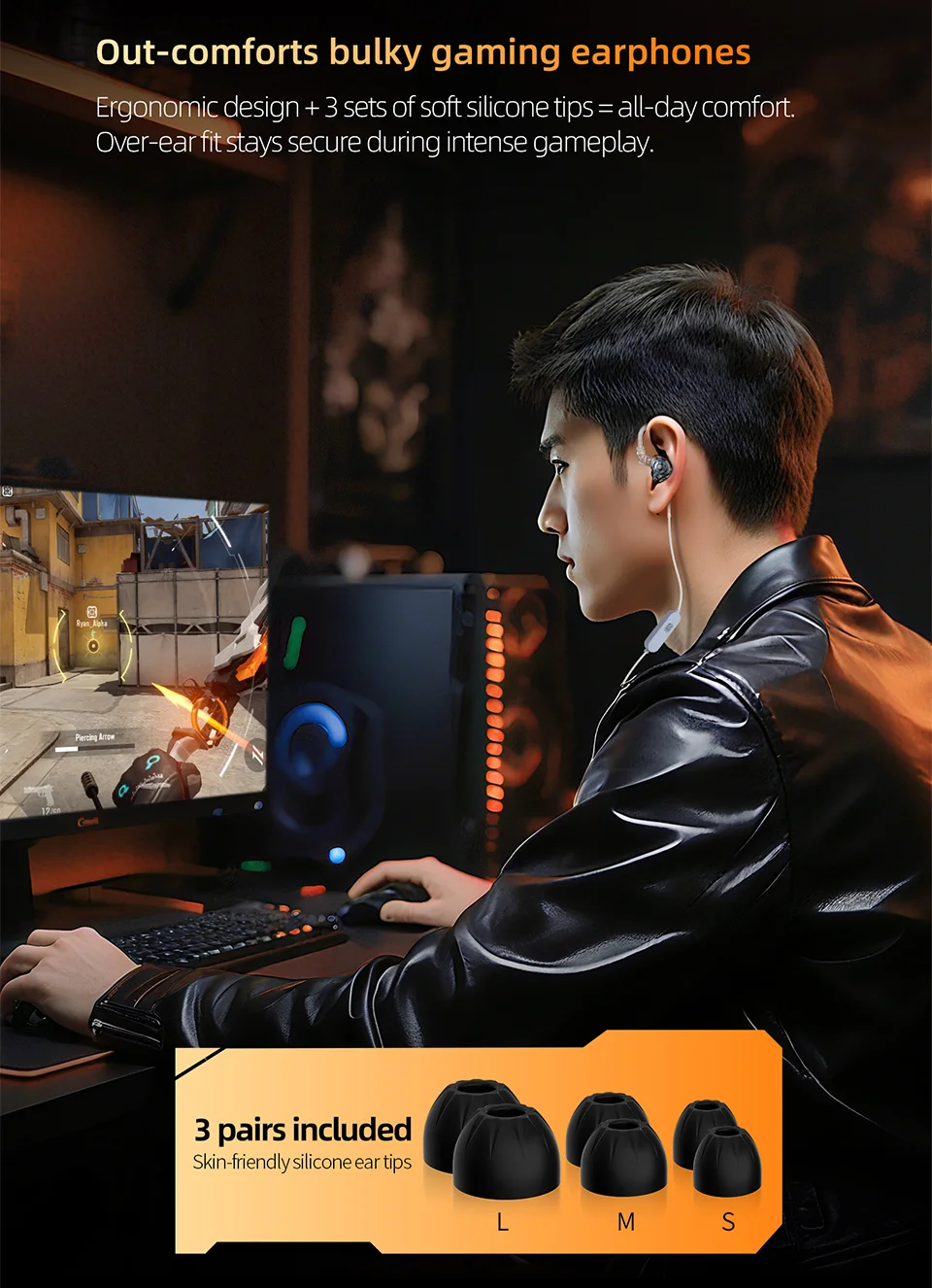 Forget bulky headsets. These low-profile wired IEM earphones eliminate head pressure and heat buildup, making them perfect for long gaming sessions, online streaming, or daily use. The ergonomic fit ensures fatigue-free comfort.
