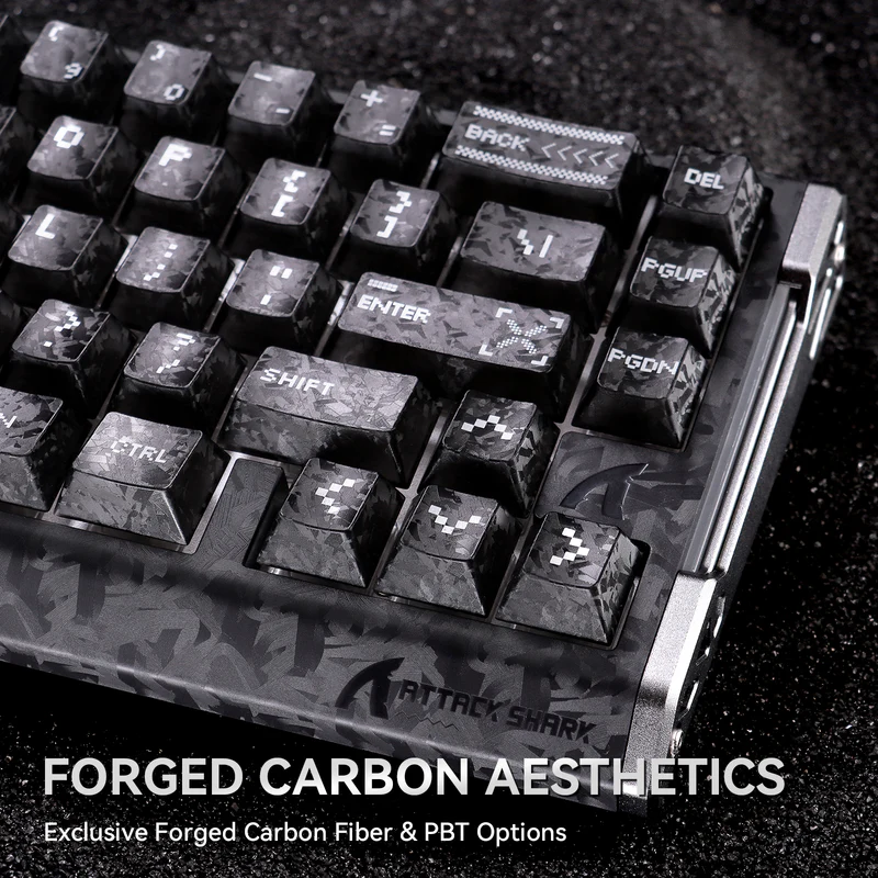 The forged carbon fiber top case with CNC aluminum accents provides a durable, lightweight, and premium gaming keyboard design, perfect for long gaming sessions.