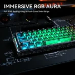 Features per-key RGB lighting and dual-zone RGB side strips for immersive gaming visuals, fully customizable through the official driver software.