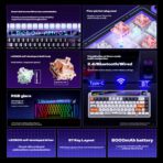 The AULA-LEOBOG AMG65 is crafted for gamers, programmers, and creators who demand more than just a keyboard. They demand a tailored experience. Featuring a gasket-mounted design, hot-swappable switches, and immersive RGB lighting, this 65% mechanical keyboard is your ultimate weapon for performance and personalization.