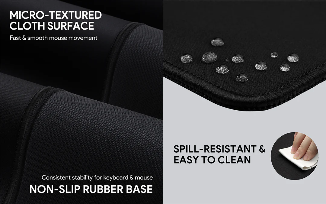 The minimalist, logo-free design blends seamlessly into any RGB gaming setup or professional workspace, while the water-resistant and easy-to-clean surface keeps your desk looking fresh and premium.